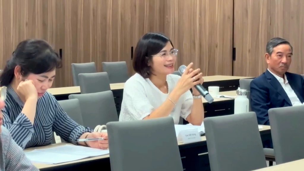 Nhà quản trị Nguyễn Thị Thu Hằng, Bệnh viện Đa khoa Hồng Hà, Hà Tĩnh, chia sẻ hành trình áp dụng quản trị Tâm Thế tại nơi làm việc (Ảnh GKM)