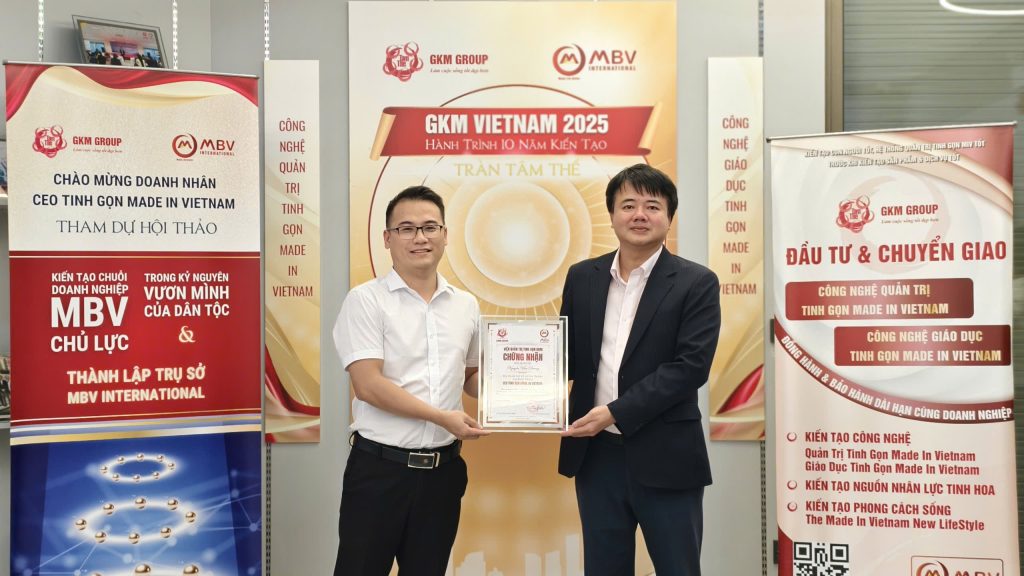 Ngày 3/9/2025, Chương trình CEO Tinh Gọn MIV Khóa 64 diễn ra tại MBV International, tòa nhà được vận hành trên nền triết lý hệ gene Made in Vietnam của GKM GROUP. Chương trình quy tụ những nhà quản trị lãnh đạo doanh nghiệp đến từ nhiều lĩnh vực: kiến trúc xây dựng, y tế, vật liệu, thương mại và dịch vụ… Tất cả học viên đều cùng chung một hành trình: kiến tạo trên nền tảng gốc rễ thật sự của quản trị: Tâm Thế.