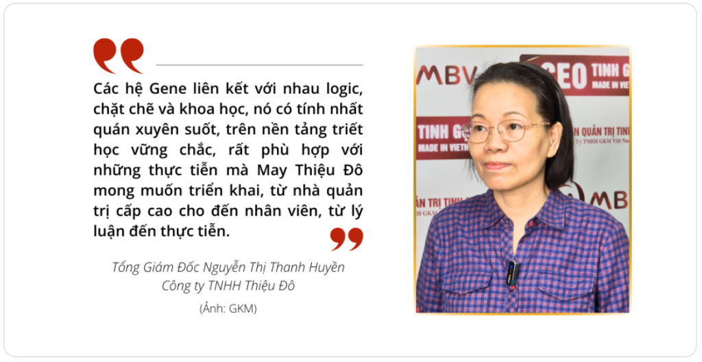 Thấu hiểu phương châm: “Kiến tạo con người tốt trước khi kiến tạo sản phẩm, dịch vụ tốt” của GKM, ông Lê Nho Thướng, Chủ tịch HĐQT công ty nhận thấy tầm quan trọng của việc đầu tư vào nâng cao năng lực quản trị cho đội ngũ cán bộ công nhân viên công ty theo Hệ Gene Quản Trị Tinh Gọn thuần Việt của GKM